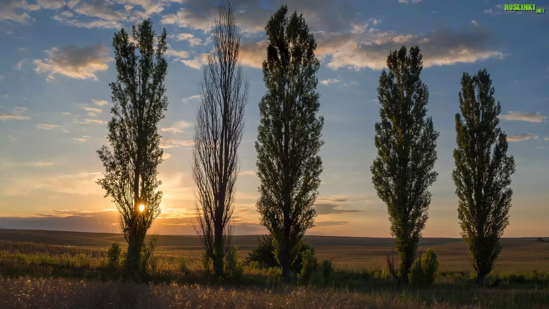 Rośliny: Drzewa, Topole, Zachód słońca