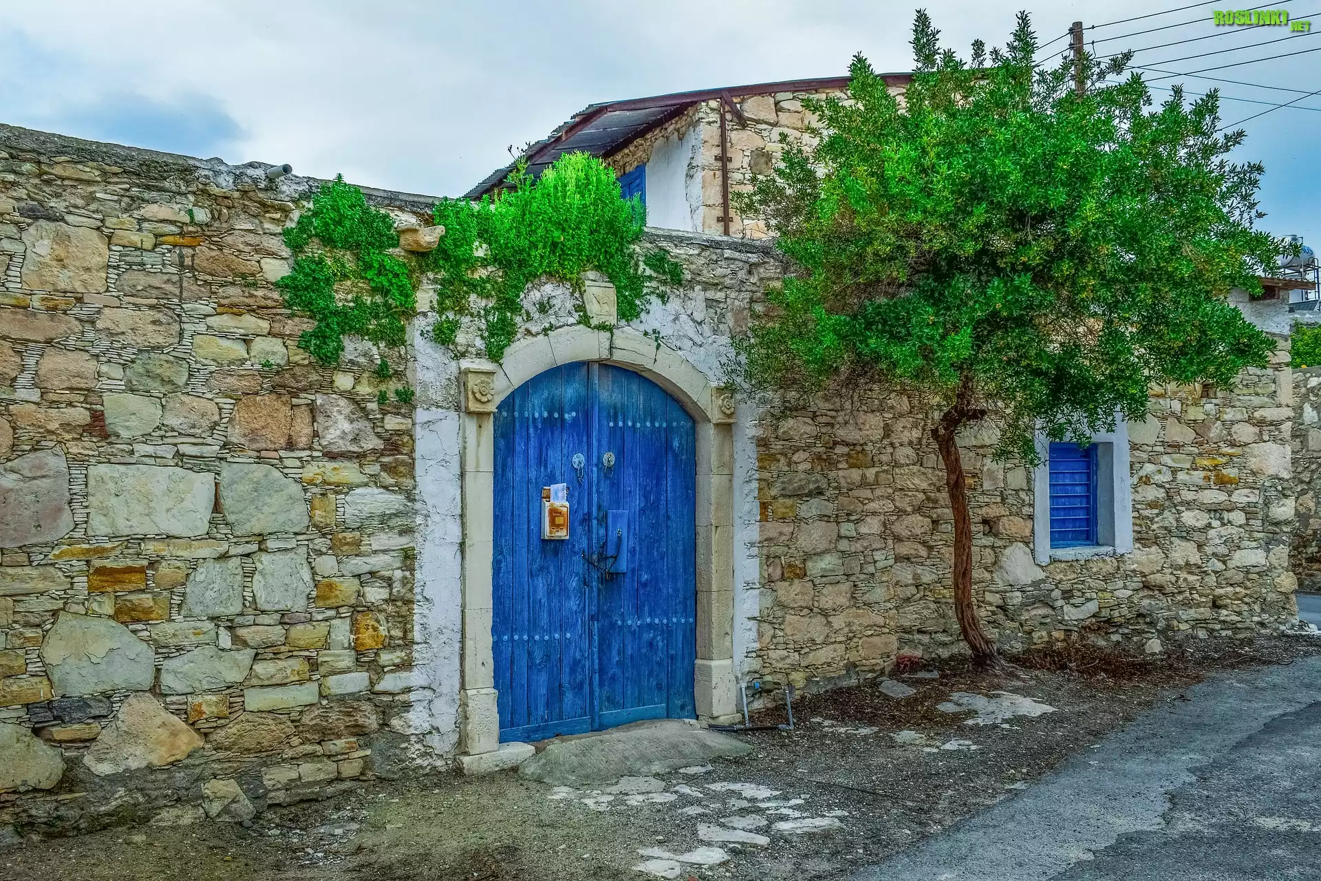 Rośliny: Drzewo, Mur, Ogrodzenie, Brama, Dom