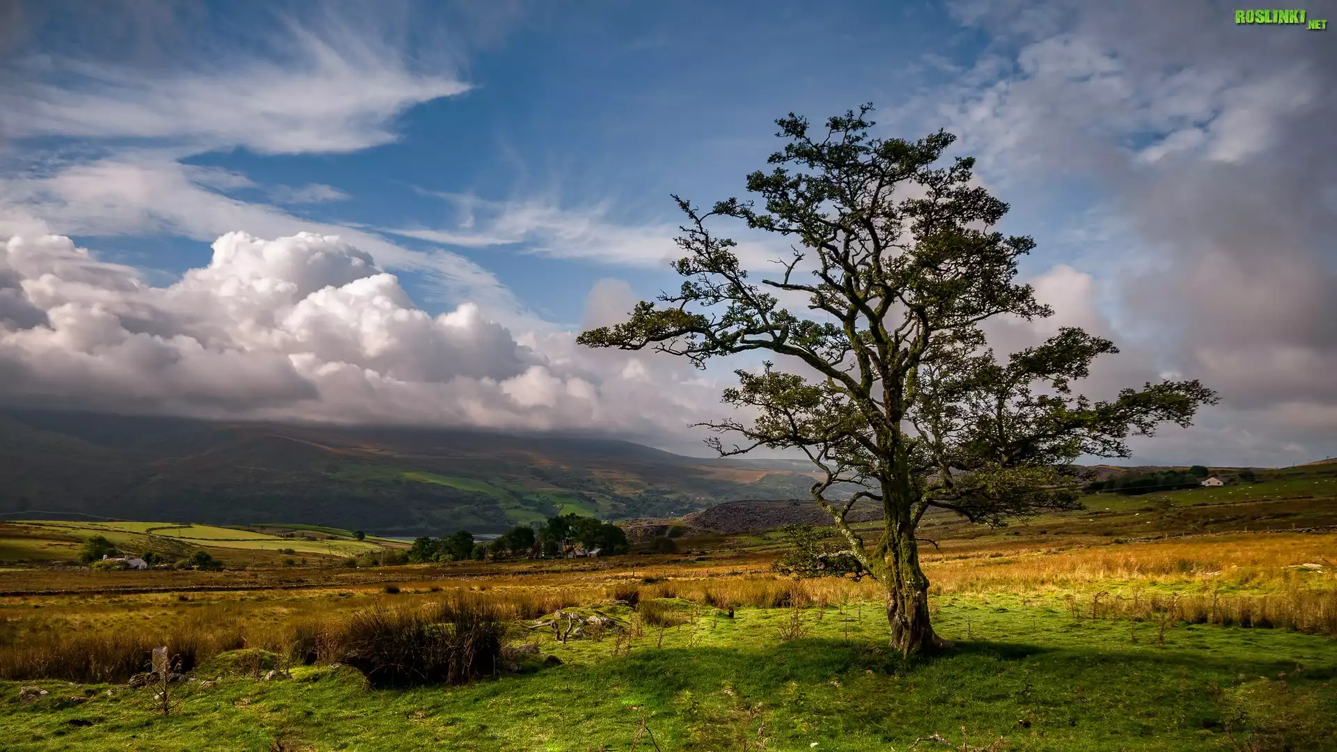 Rośliny: Drzewo, Pole, Dolina, Chmury