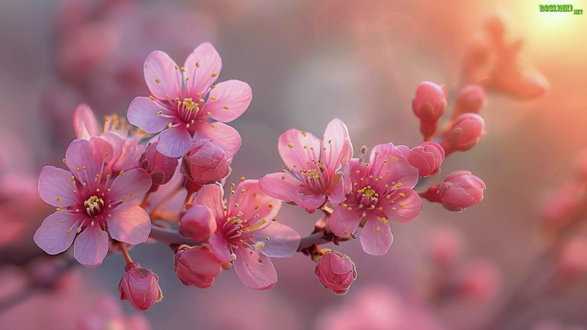 Rośliny: Różowe, Kwiaty, Gałązka, Drzewo owocowe, Rozmyte, Tło
