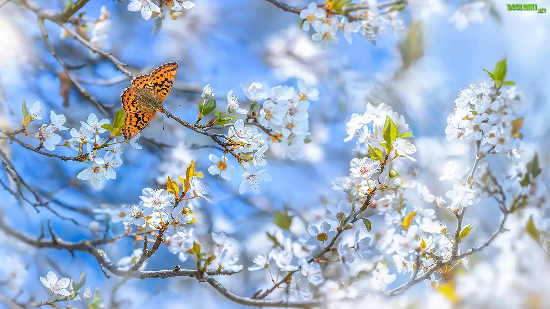 Rośliny: Gałązki, Drzewo owocowe, Kwiaty, Motyl, Dostojka malinowiec