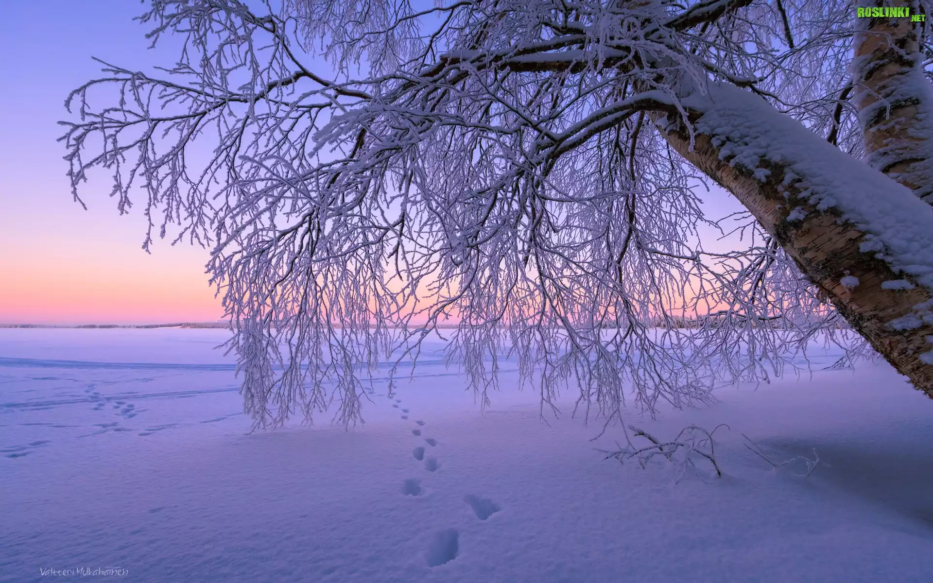 Rośliny: Zima, Drzewo, Galęzie, Ośnieżone, Ślady