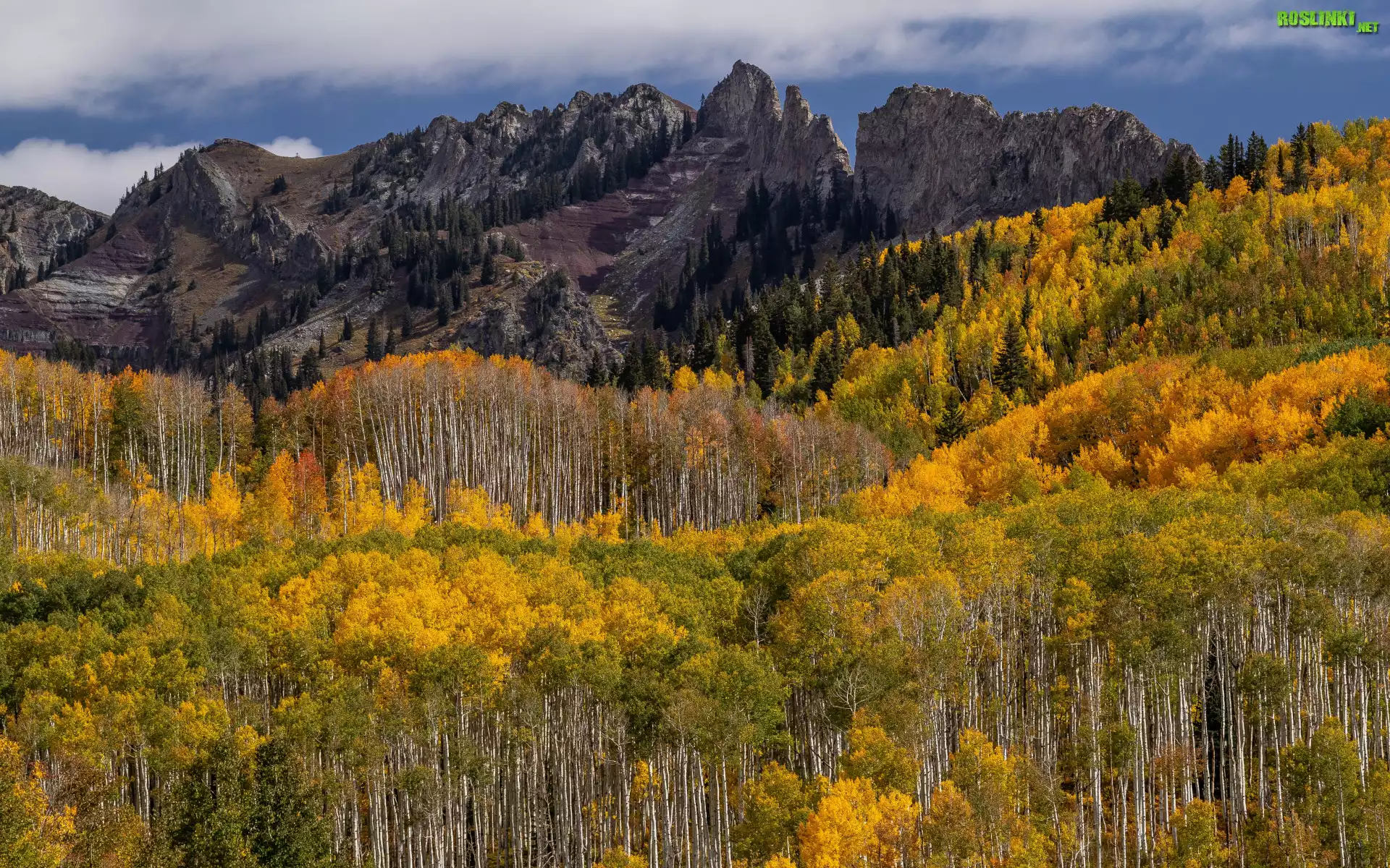 Rośliny: Jesień, Drzewo, Góry, Las, Chmury