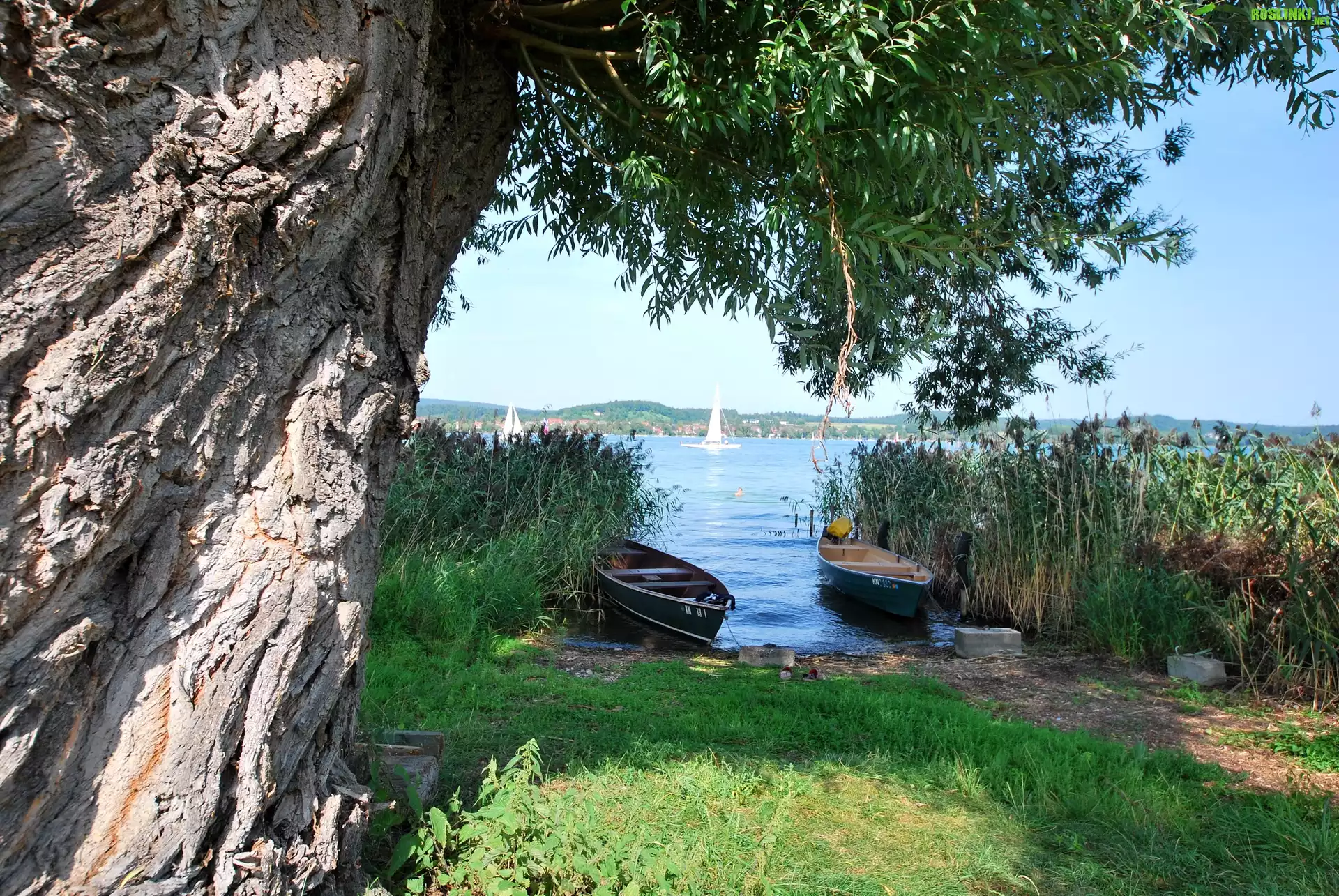 Rośliny: Wierzba, Kora, Jezioro, Łódki