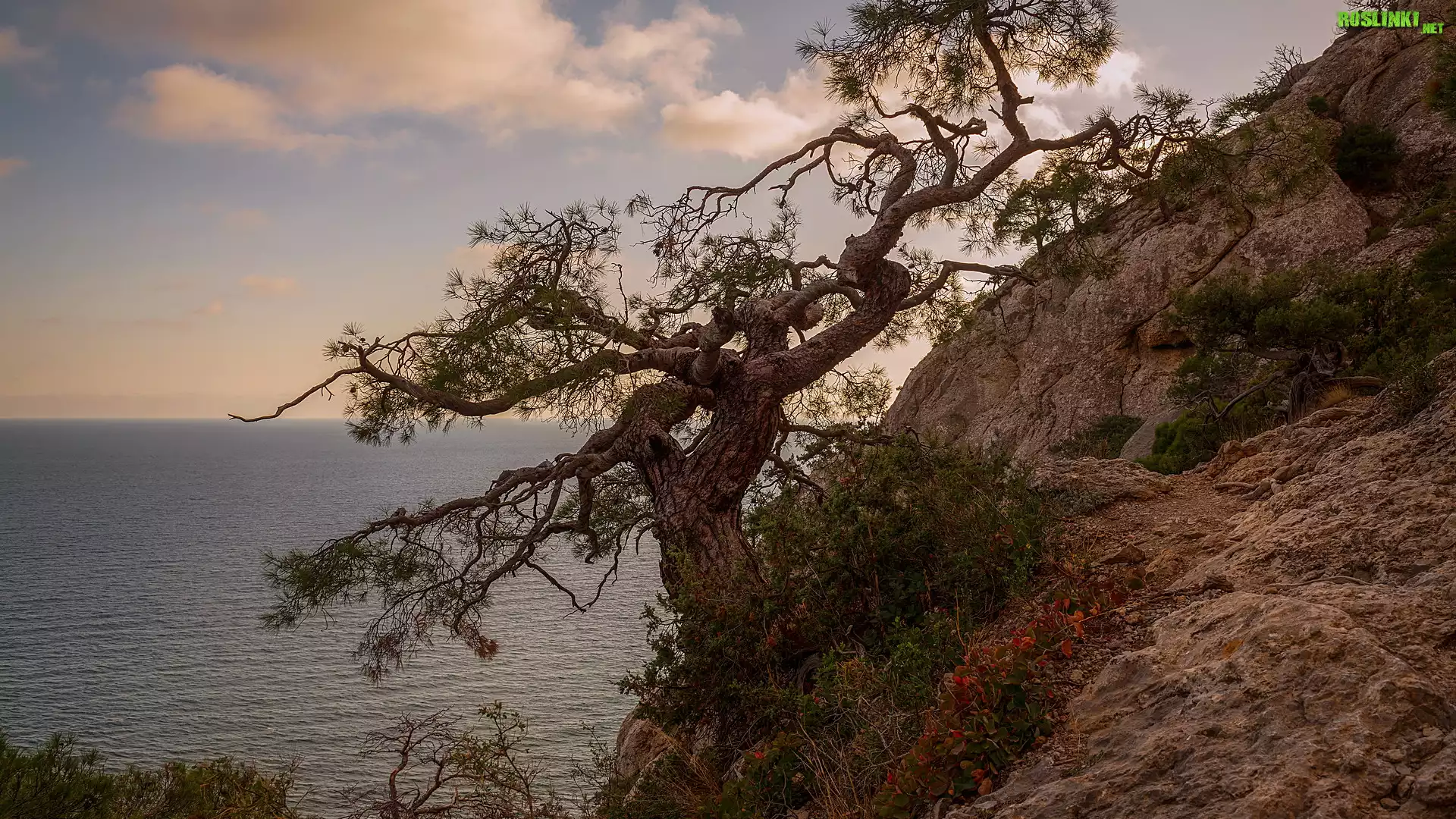 Rośliny: Skała, Drzewo, Morze Czarne, Sosna kalabryjska, Sudak, Krym