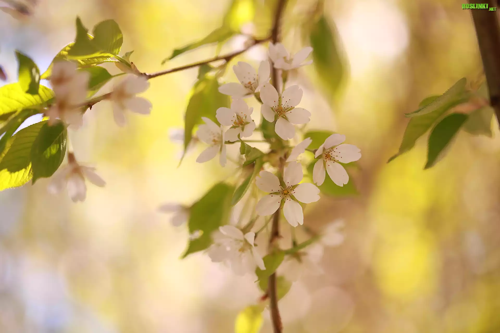 Rośliny: Gałązka, Białe, Kwiaty, Drzewo owocowe, Rozmyte tło