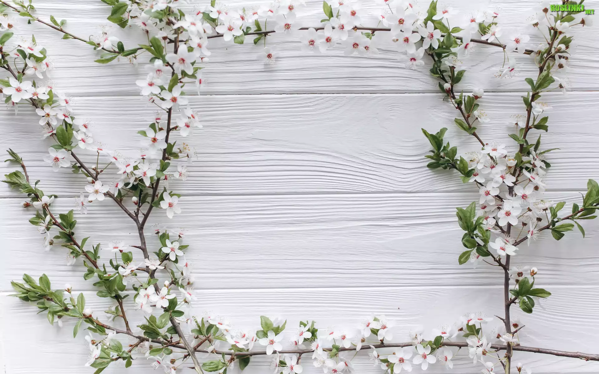 Rośliny: Drzewo owocowe, Gałęzie, Białe, Kwiaty, Deski