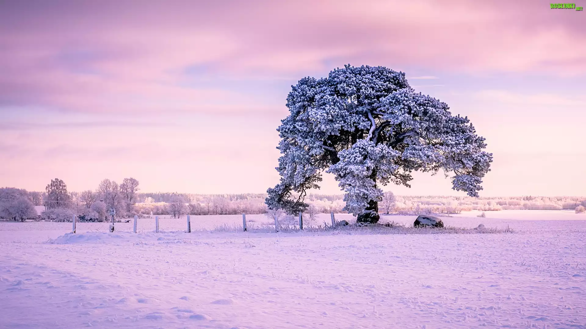Rośliny: Śnieg, Drzewo, Ogrodzenie