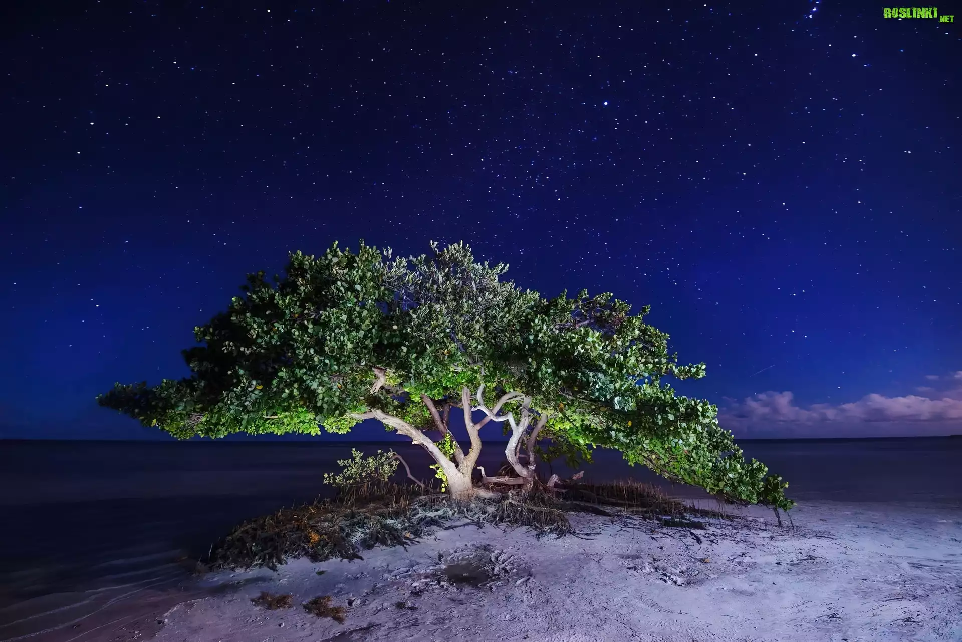 Rośliny: Drzewo, Wydma, Noc, Gwiazdy