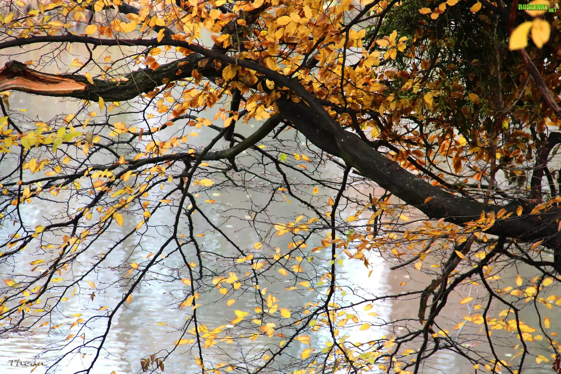 Rośliny: Drzewo, Nad, Wodą, Jesień, Żółte, Liście