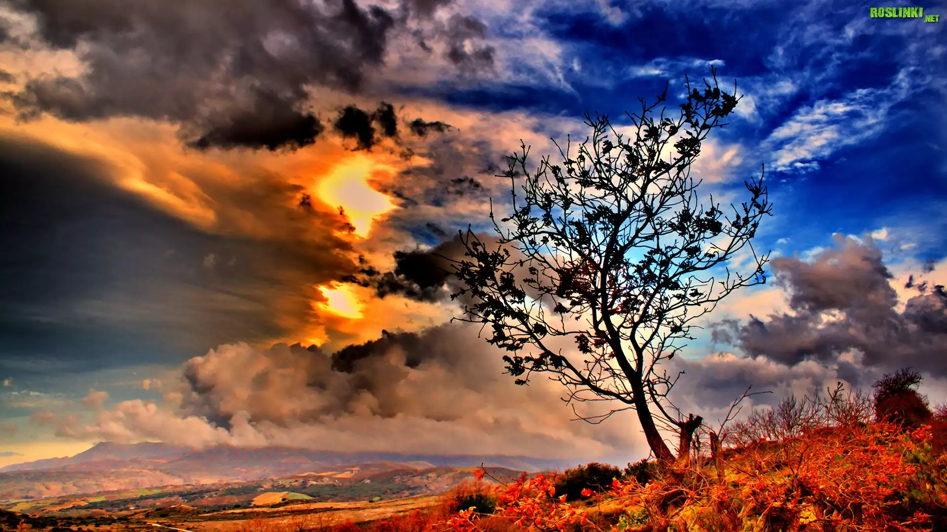 Rośliny: Drzewo, Niebo, Chmury, Przebijające, Słońce