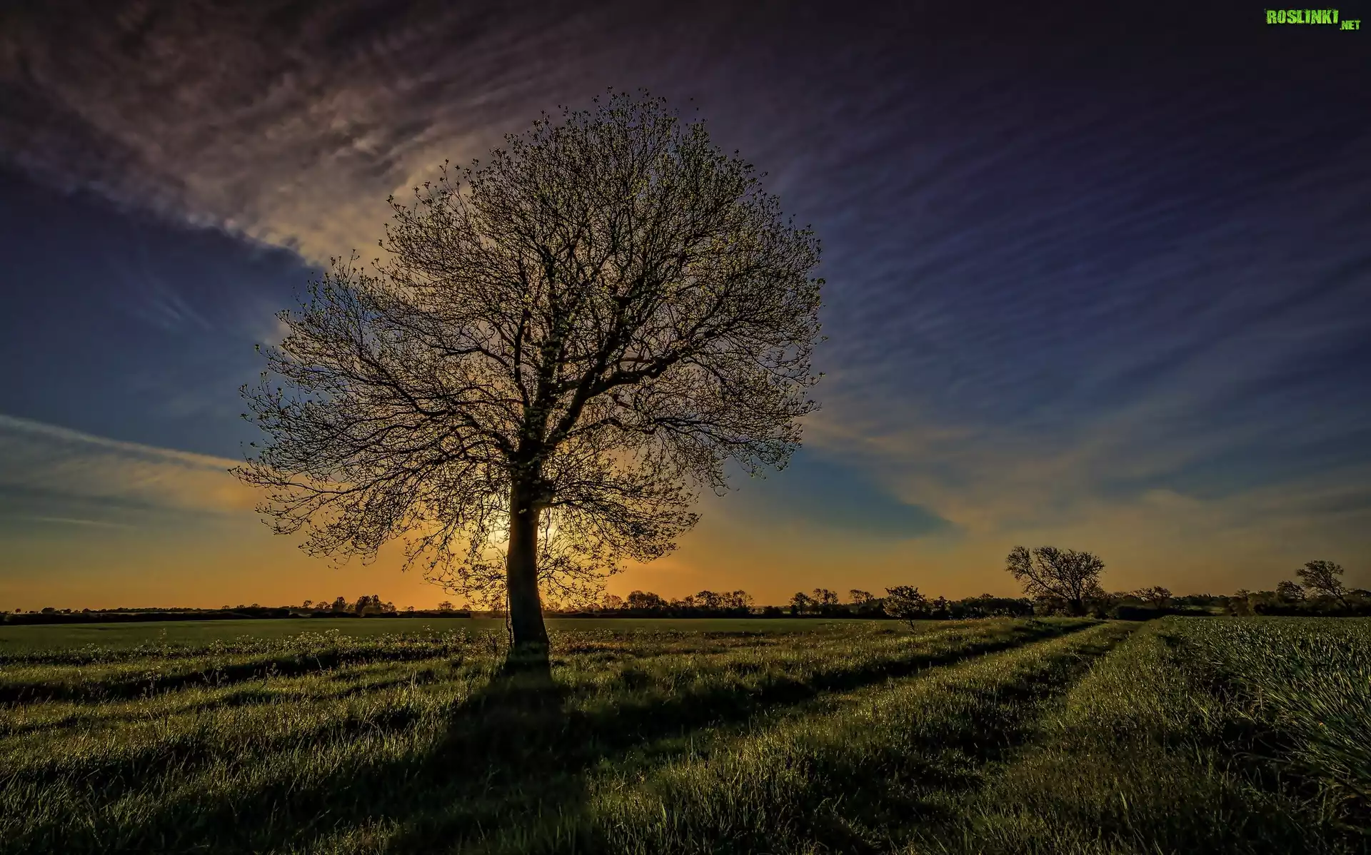 Rośliny: Drzewo, Zachód Słońca, Pole