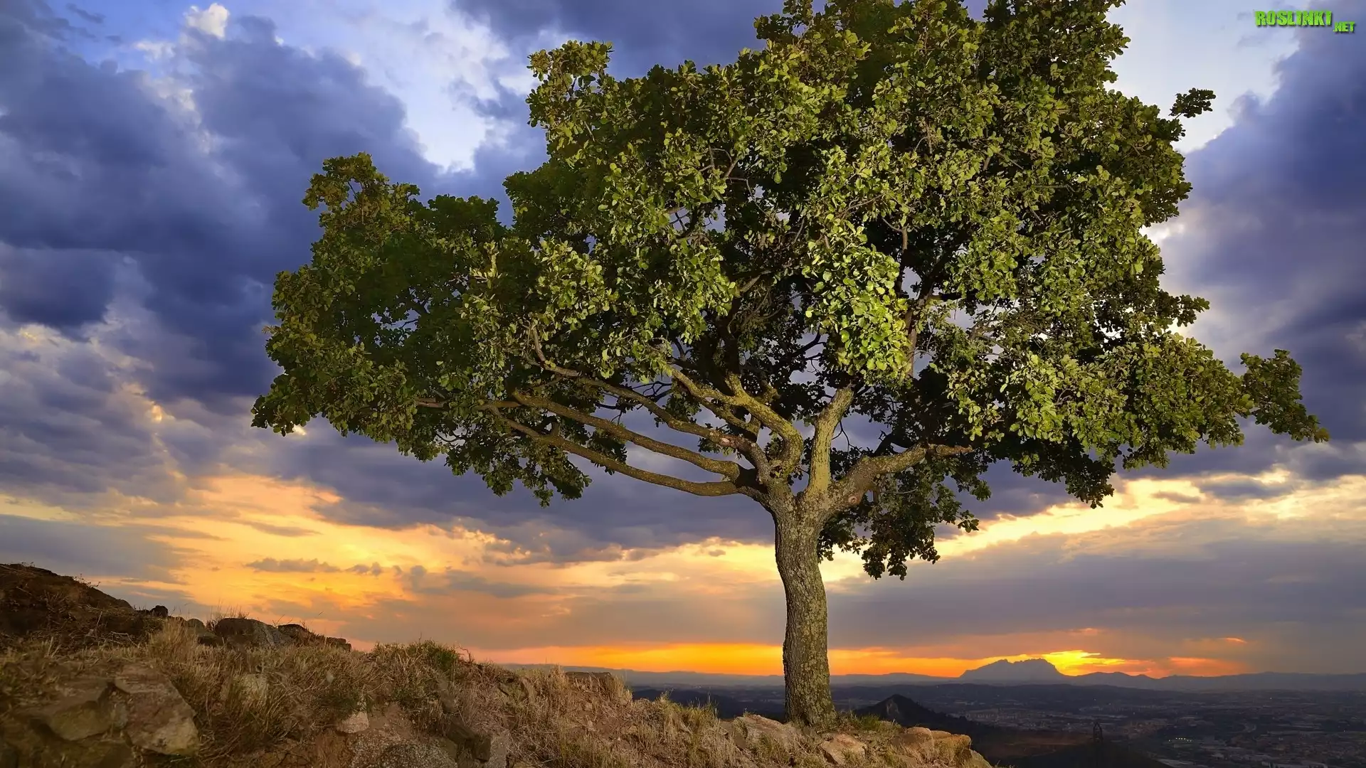 Rośliny: Drzewo, Skały, Zachód słońca, Niebo