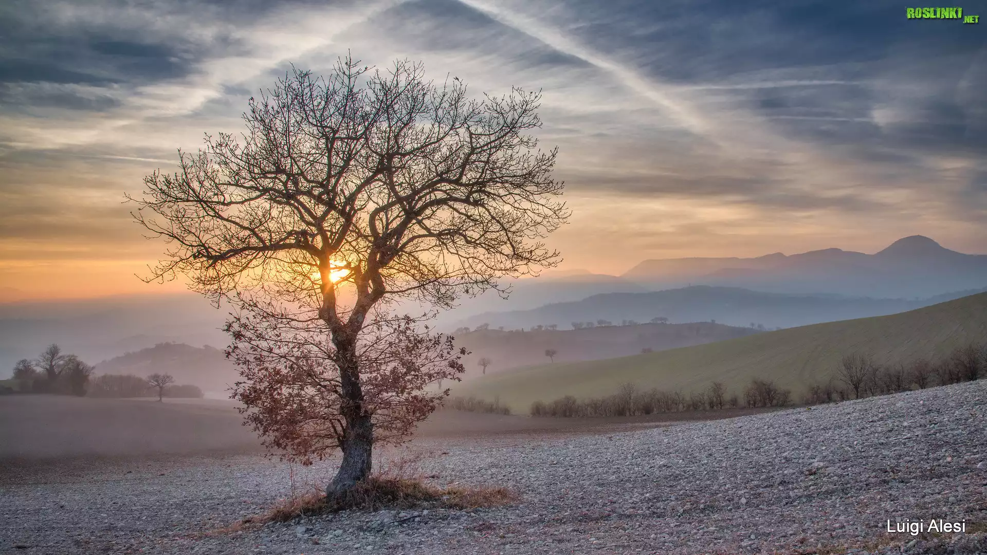 Rośliny: Samotne, Drzewo, Słońce, Pole, Wzgórza