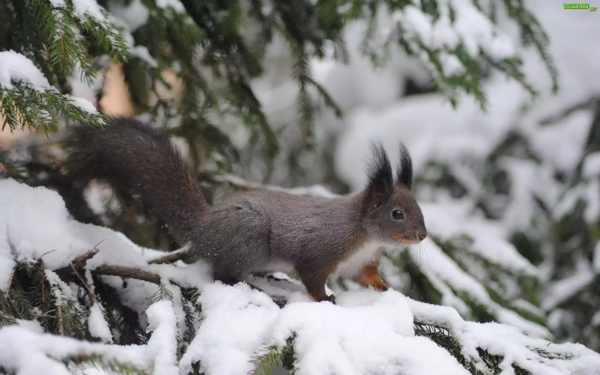 Rośliny: Wiewiórka, Drzewo, Zima