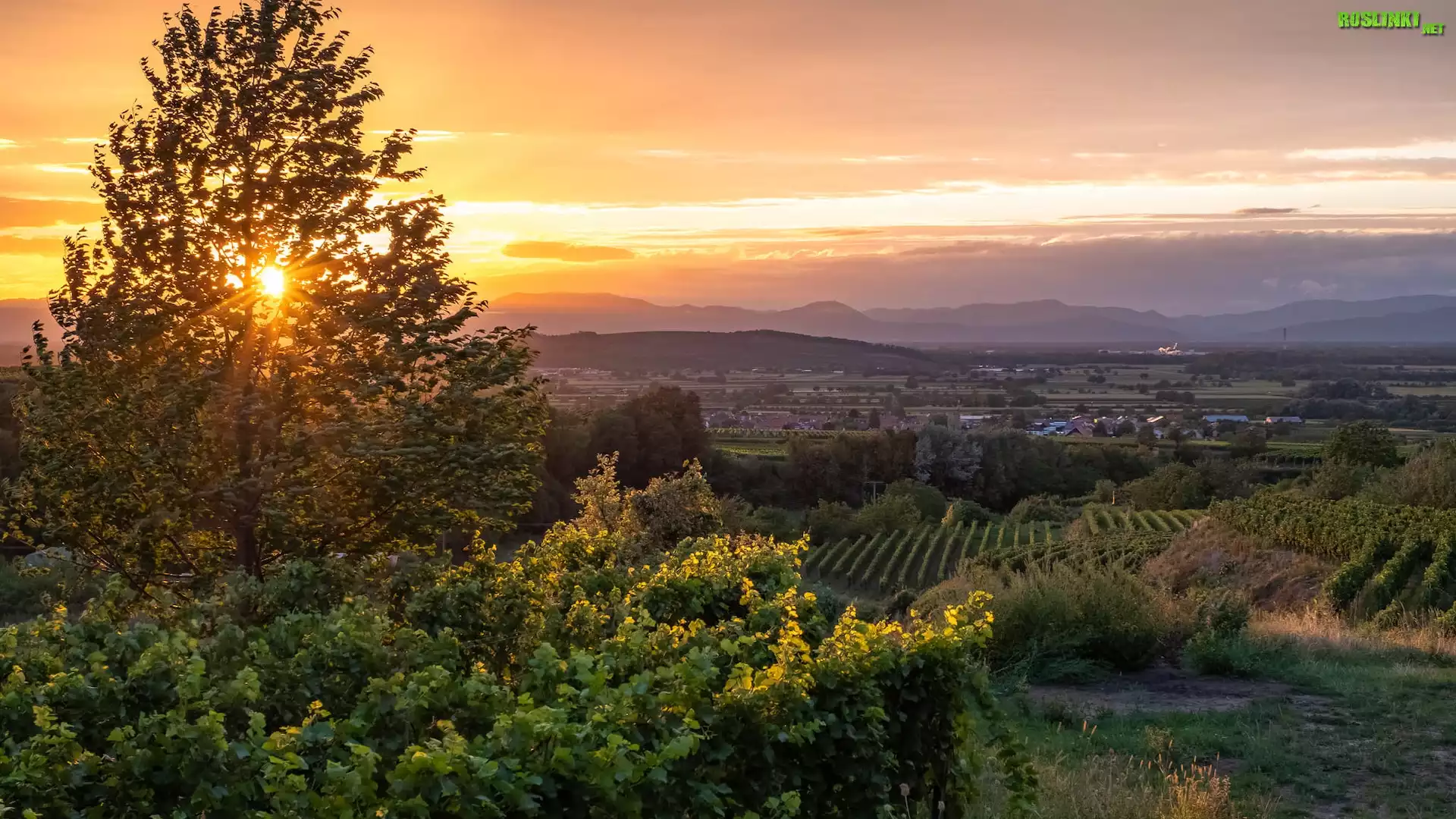 Rośliny: Drzewo, Promienie słońca, Pola, Winnice, Roślinność