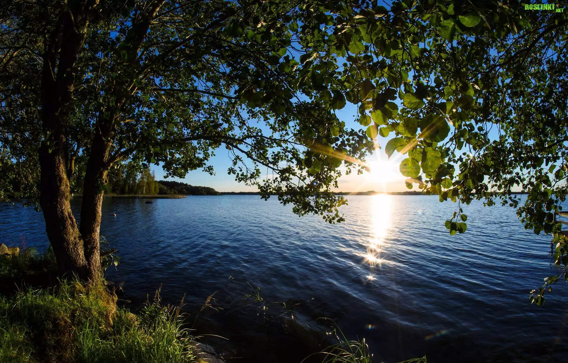 Rośliny: Drzewo, Jezioro, Wschód słońca