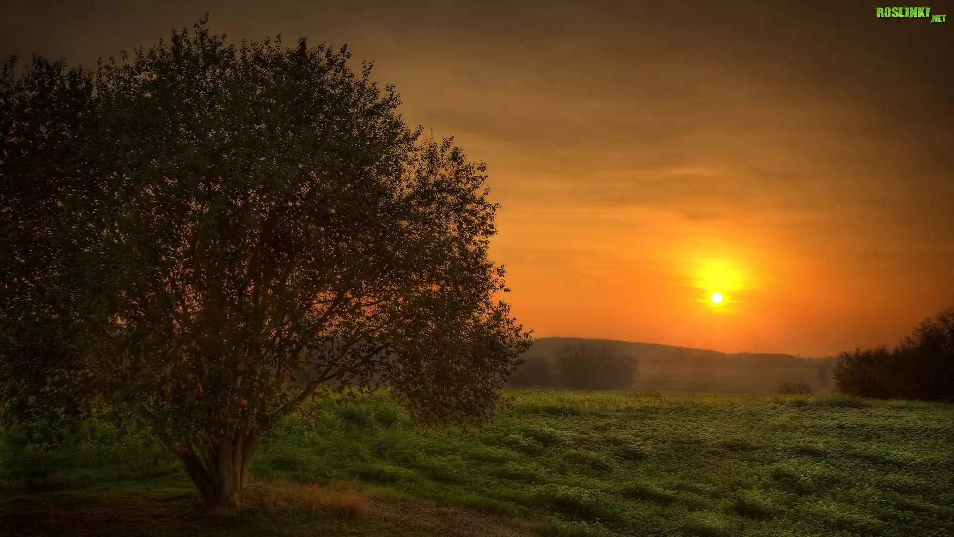 Rośliny: Drzewo, Łąka, Zachód, Słońca