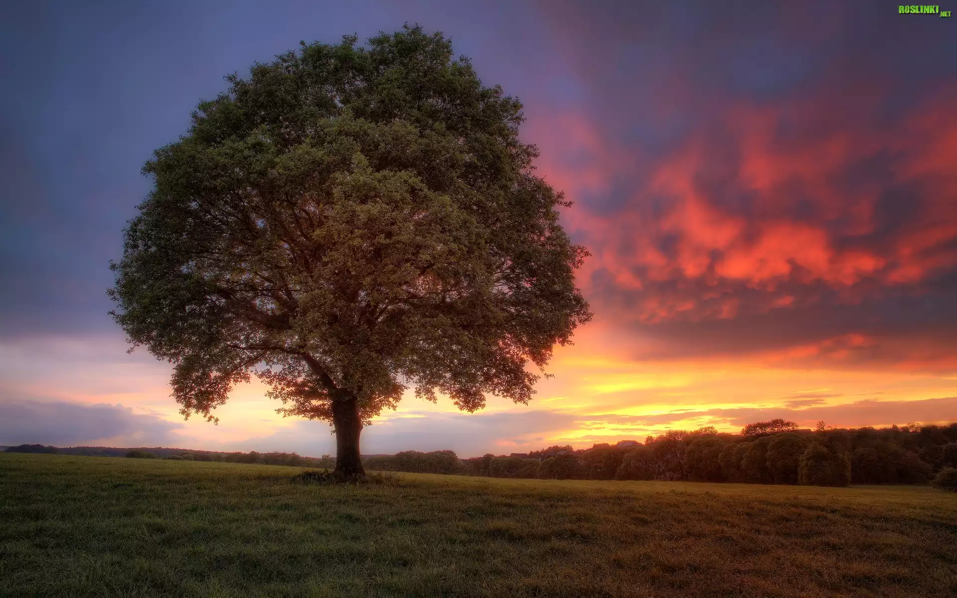 Rośliny: Drzewo, Trawa, Zachód, Słońca