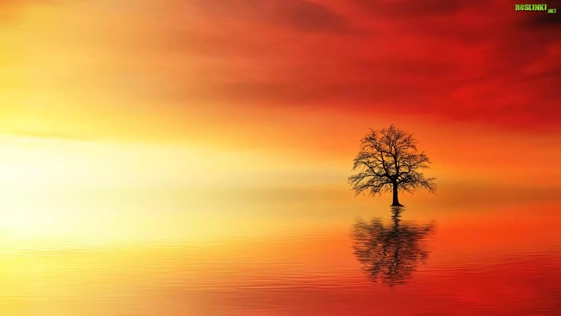Rośliny: Drzewo, Woda, Zachód słońca