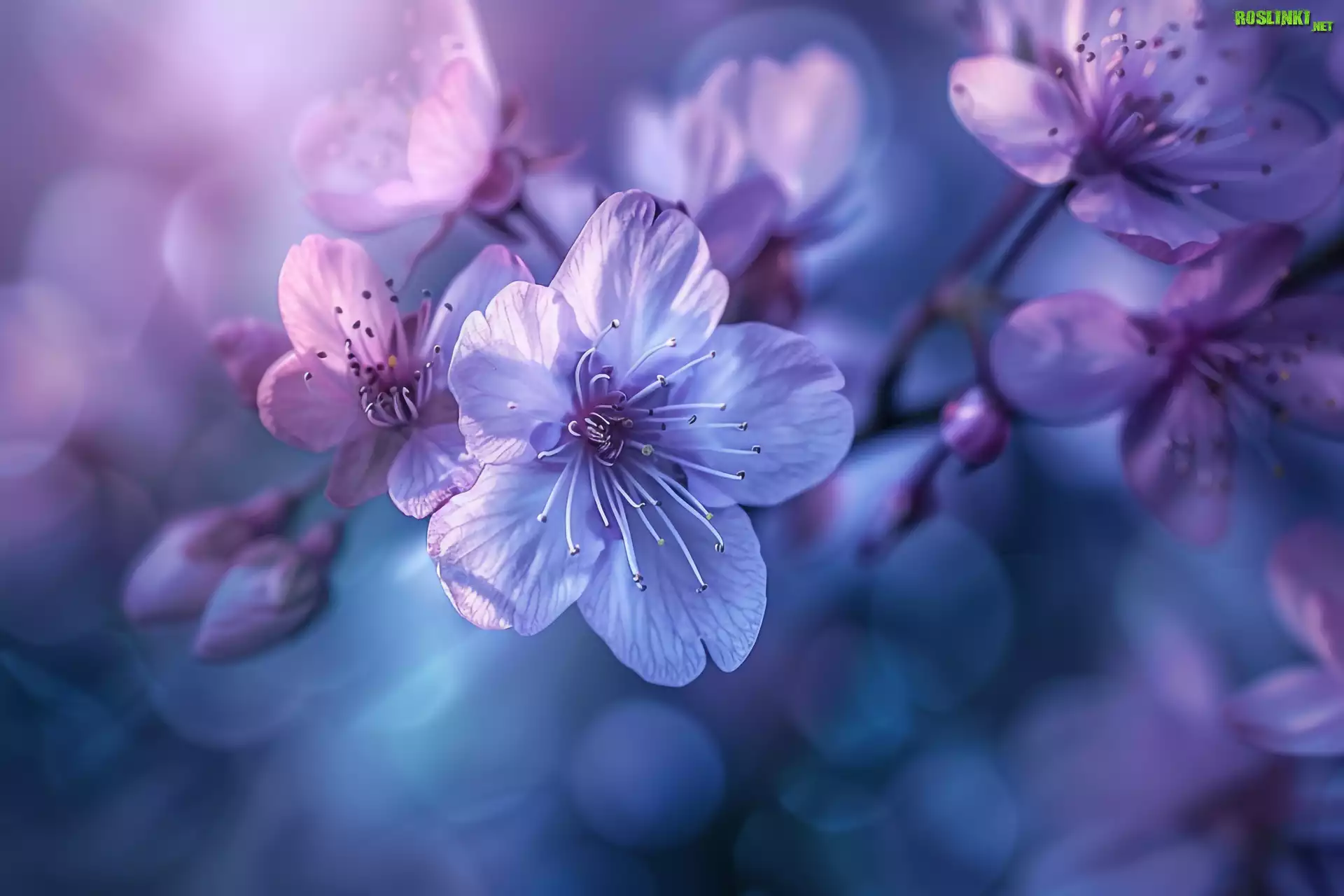 Rośliny: Fioletowe, Kwiaty, Gałązka, Drzewo owocowe, Zbliżenie