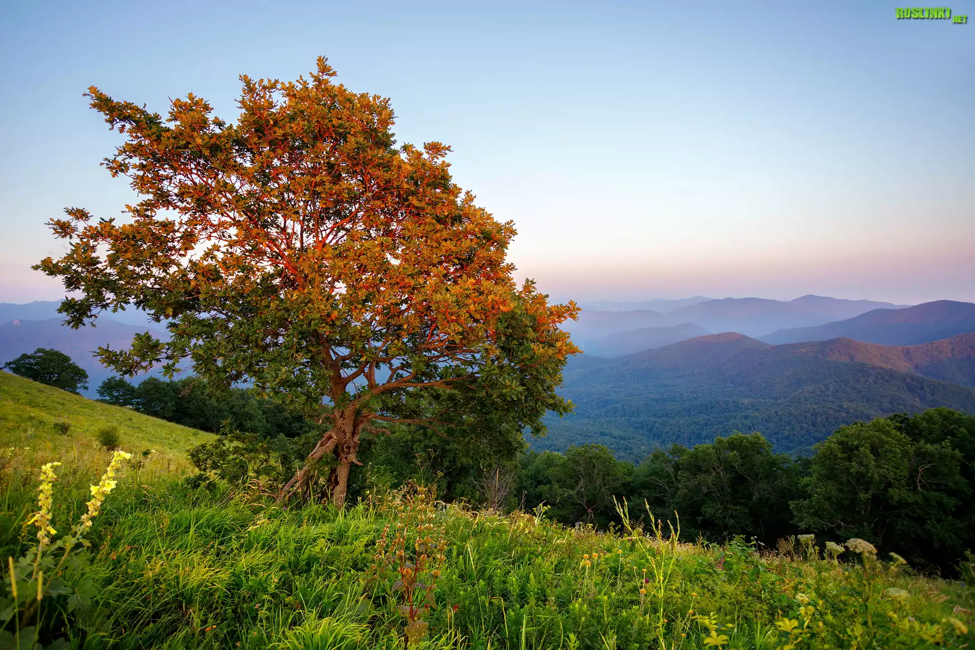 Rośliny: Drzewo, Wzgórze, Góry, Zielona, Trawa