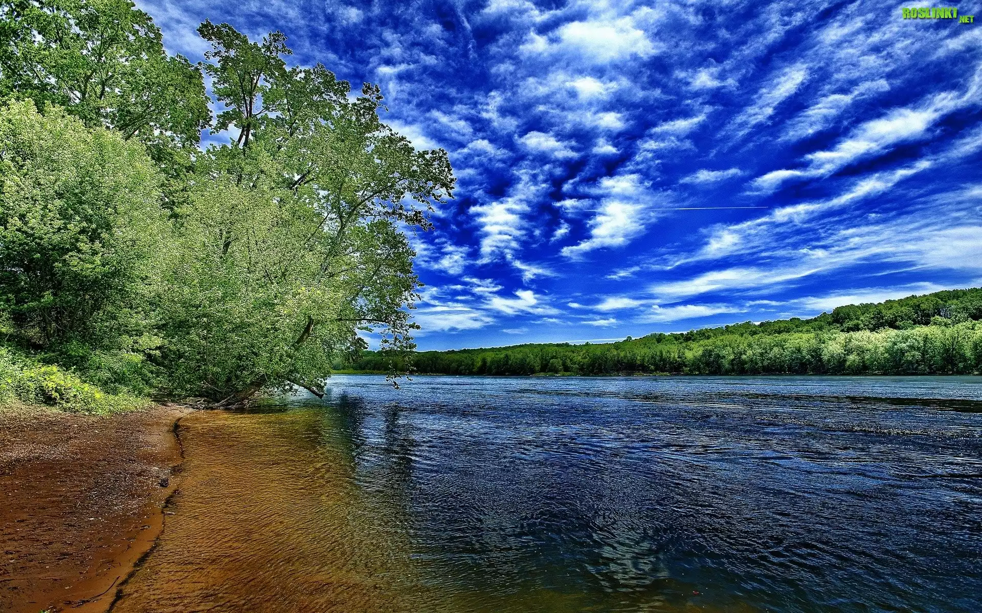 Rośliny: Duża, Rzeka, Drzewa, Chmury, Niebo