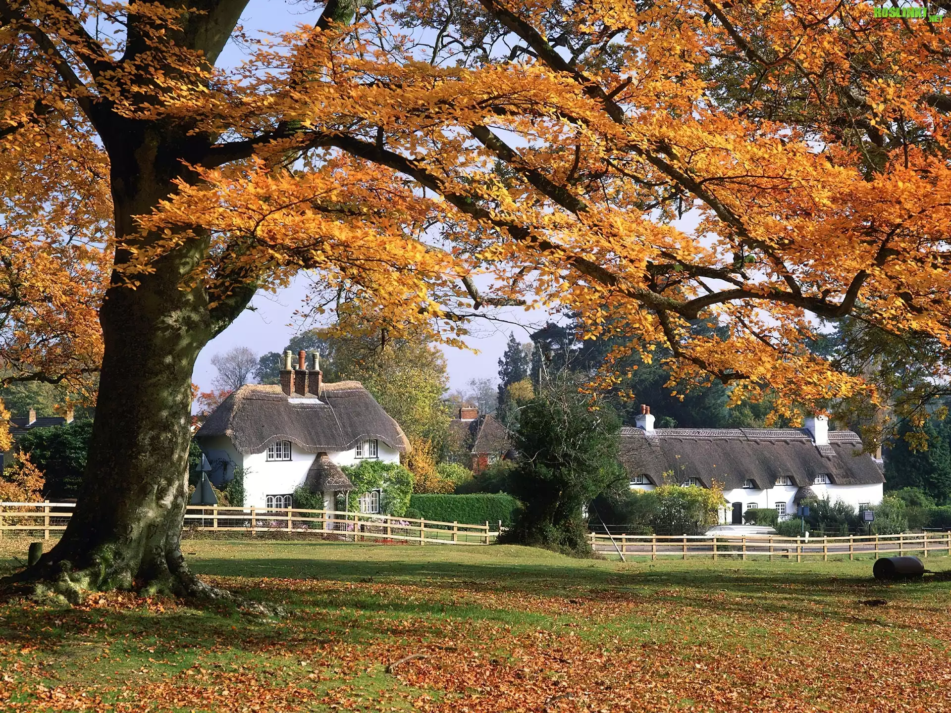 Rośliny: Duże, Drzewo, Żółte, Liście, Domy