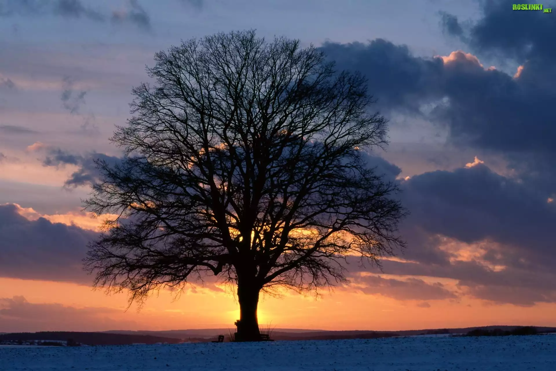 Rośliny: Duże, Drzewo, Zachód, Słońca