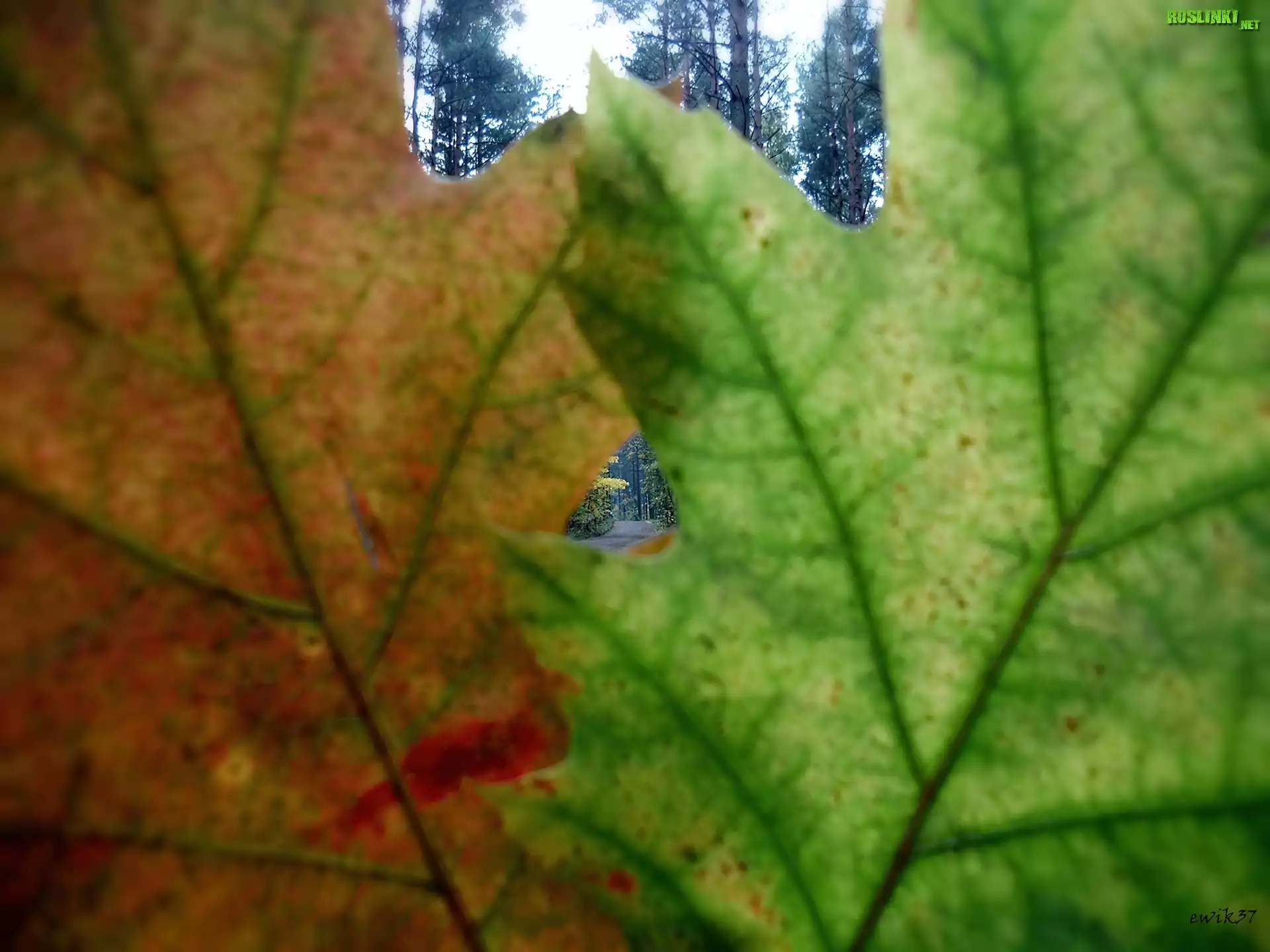 Rośliny: Dwa, Dębowe, Liście, Okienko, Droga, Las