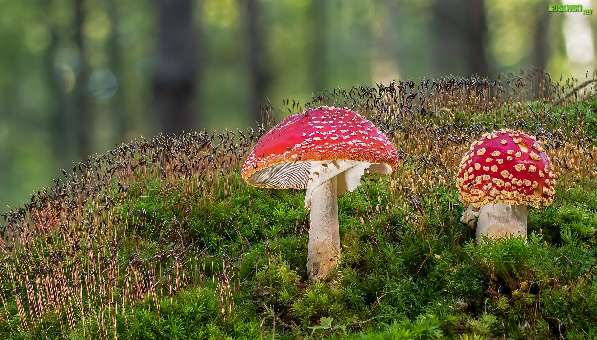 Rośliny: Dwa, Grzyby, Muchomory, Mech