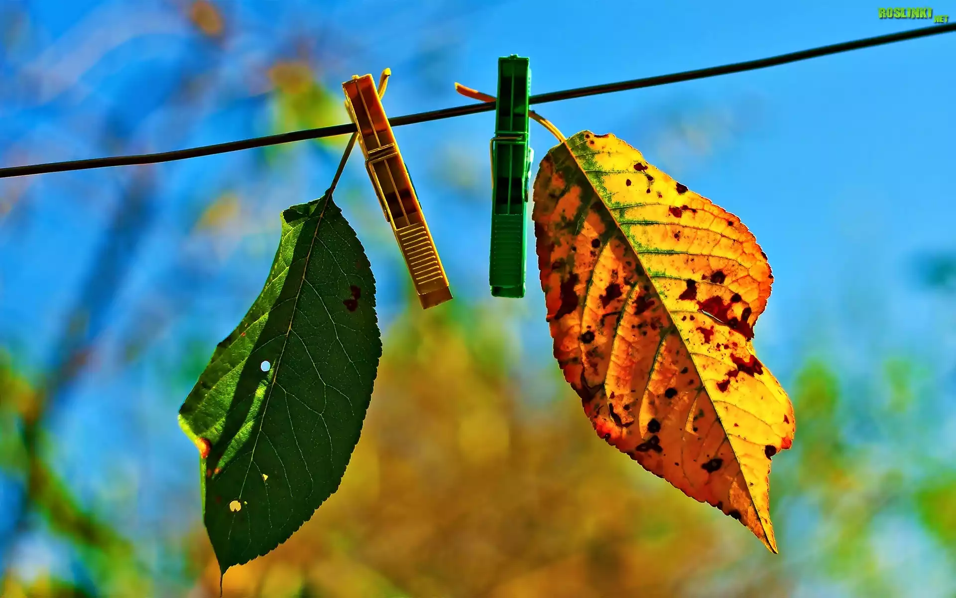 Rośliny: Dwa, Listki, Spinacze, Sznur, Niebo