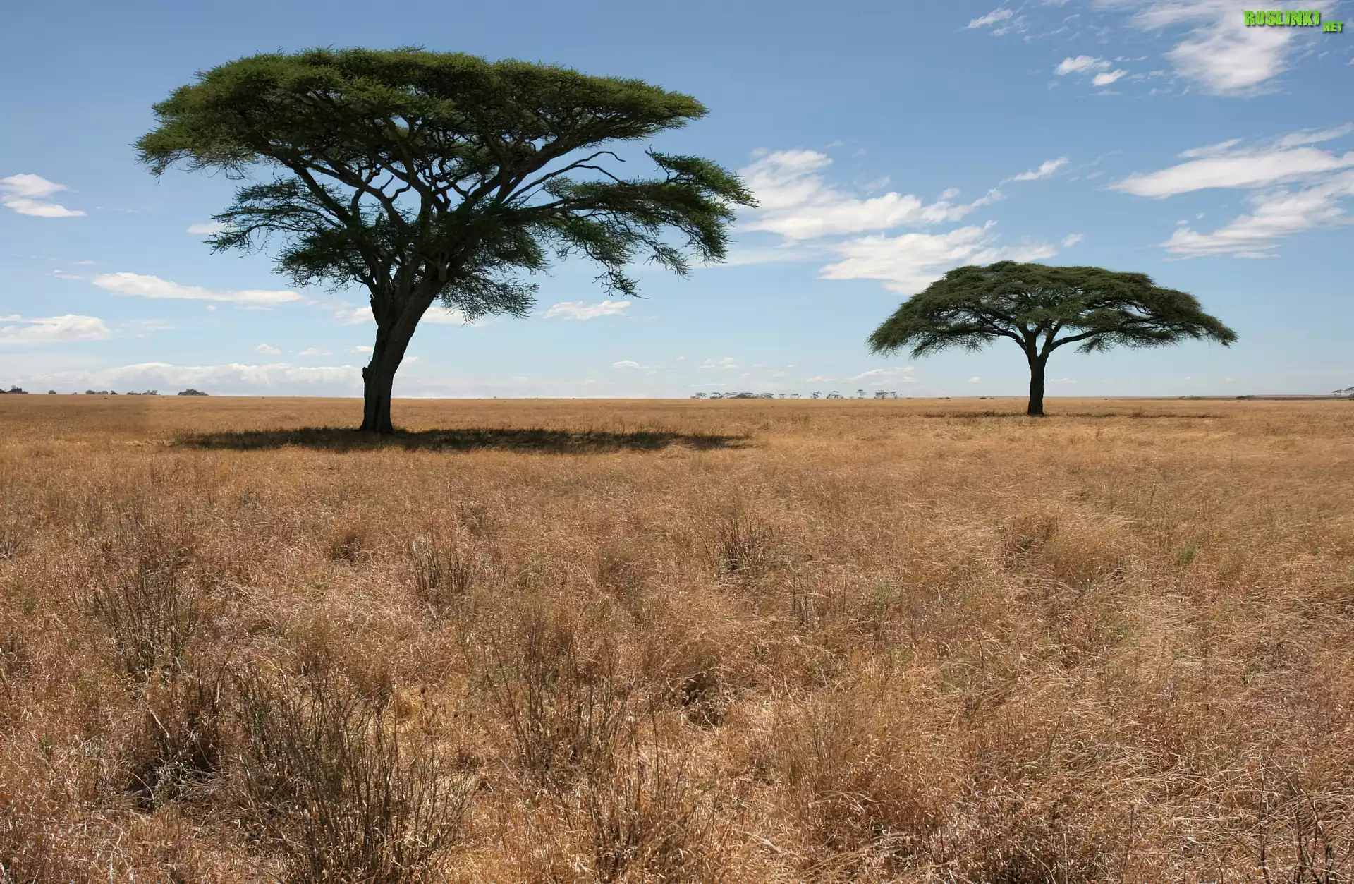 Rośliny: Dwie, Akacje, Sucha, Trawa, Chmurki