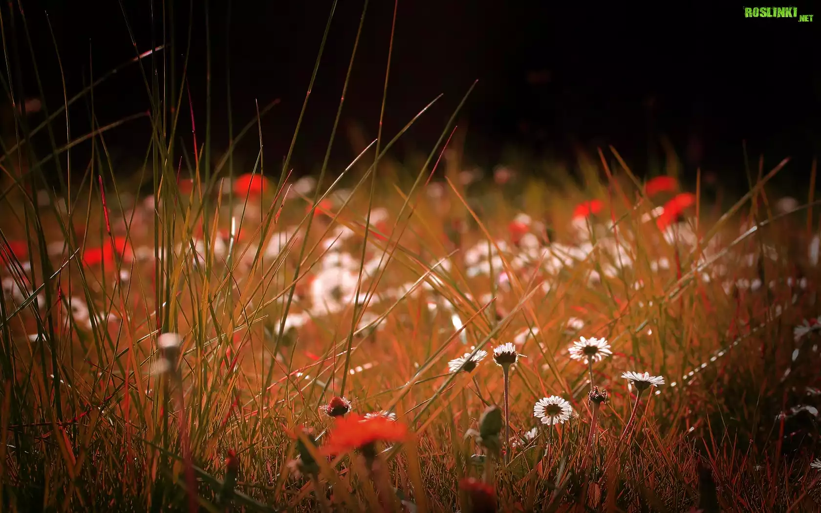 Rośliny: Łąka, Kwiaty, Stokrotki, Źdźbła, Trawy