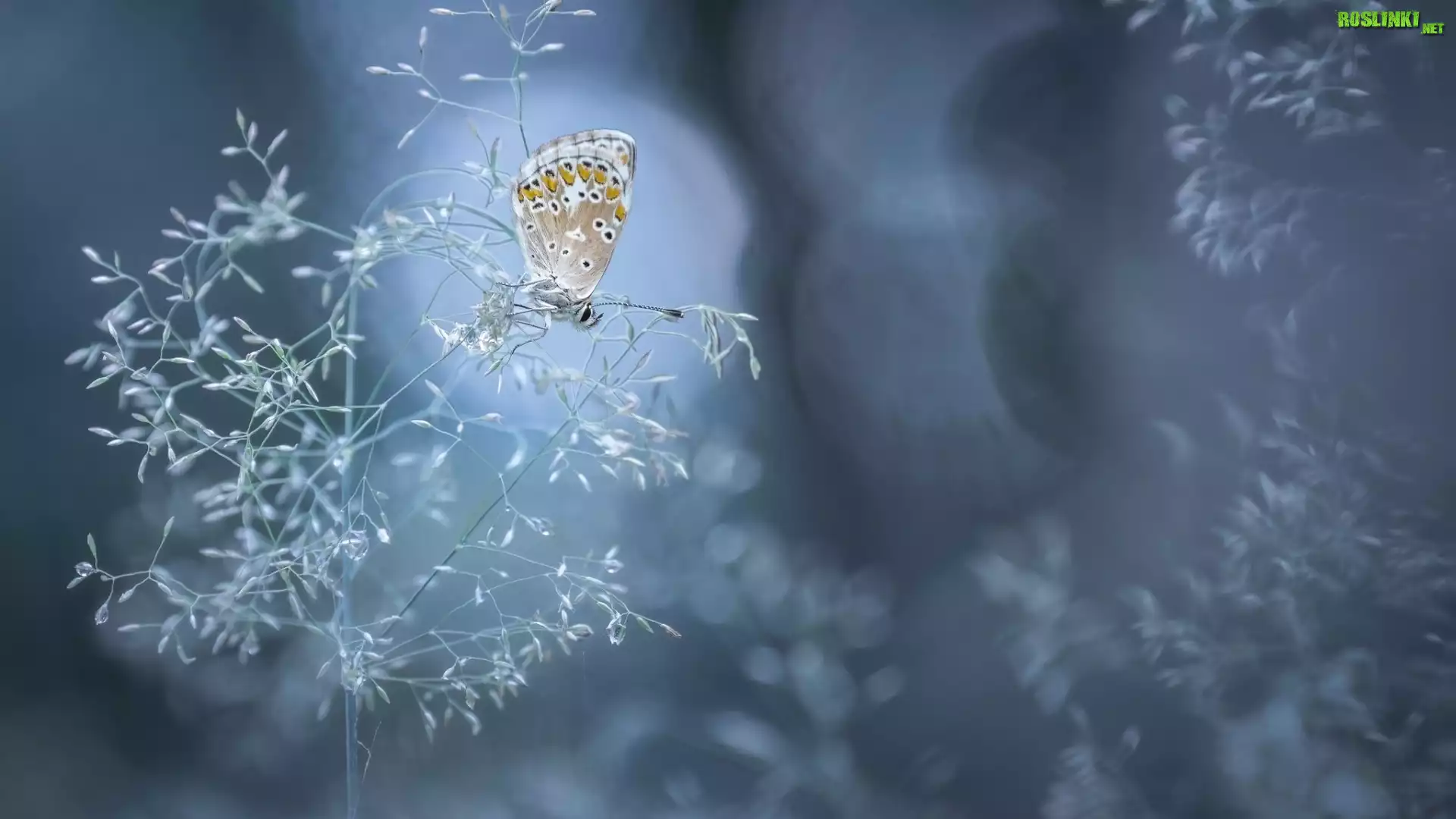 Rośliny: Źdźbło, Trawa, Motyl, Modraszek ikar, Bokeh