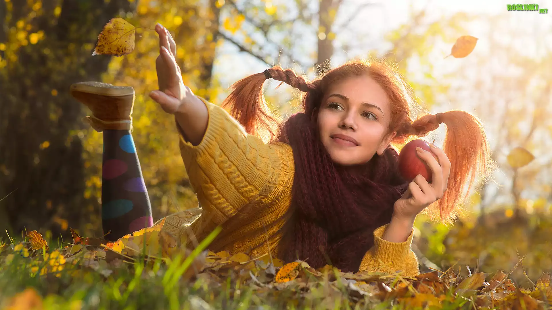 Rośliny: Dziewczyna, Jabłko, Las, Liście, Jesień