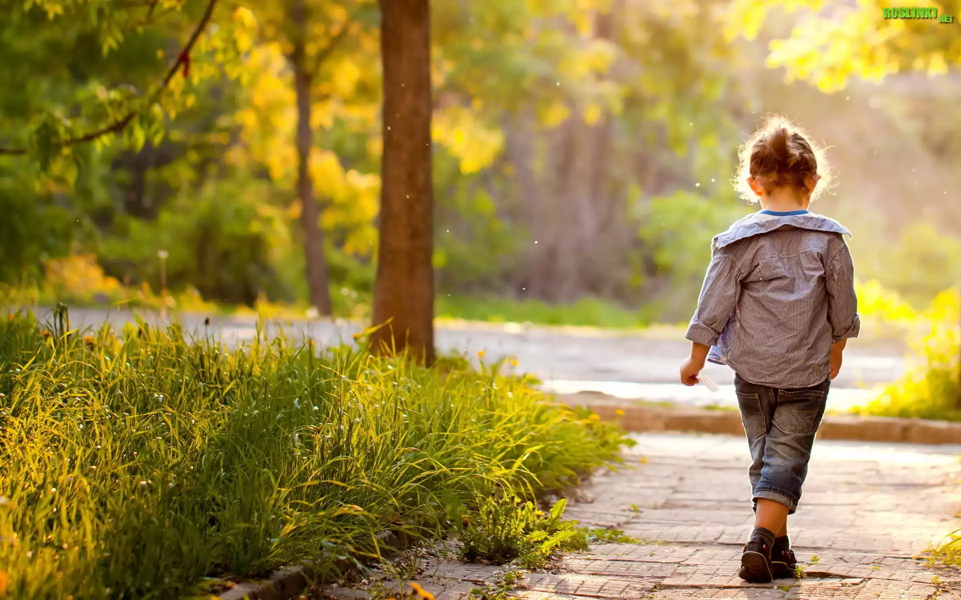 Rośliny: Dziewczynka, Ulica, Drzewa, Trawa