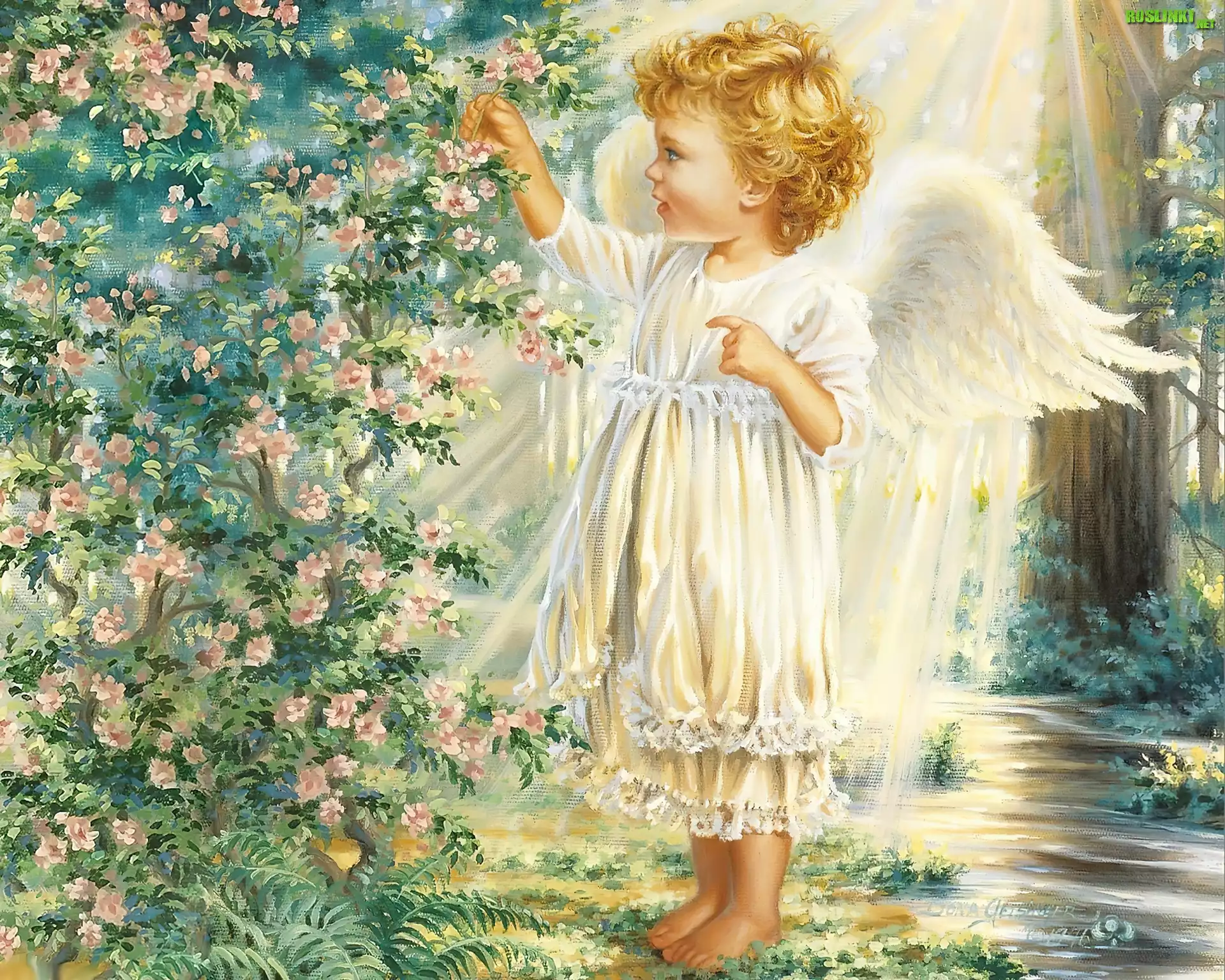 Dziewczynka, Aniołek, Kwitnący, Krzew