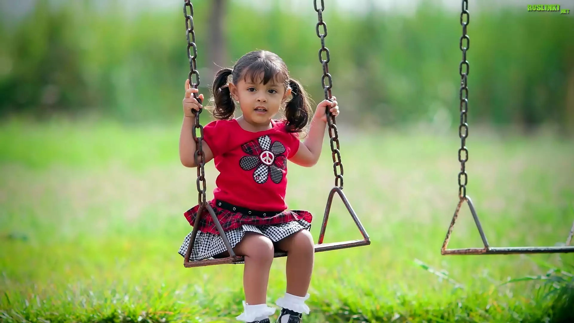 Rośliny: Dziewczynka, Huśtawka, Trawnik, Rozmycie