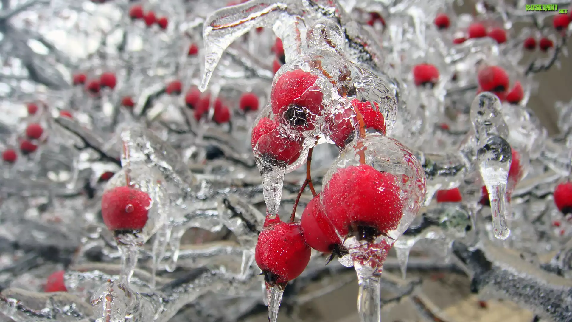 Rośliny: Dzika róża, Lód, Oblodzone, Owoce