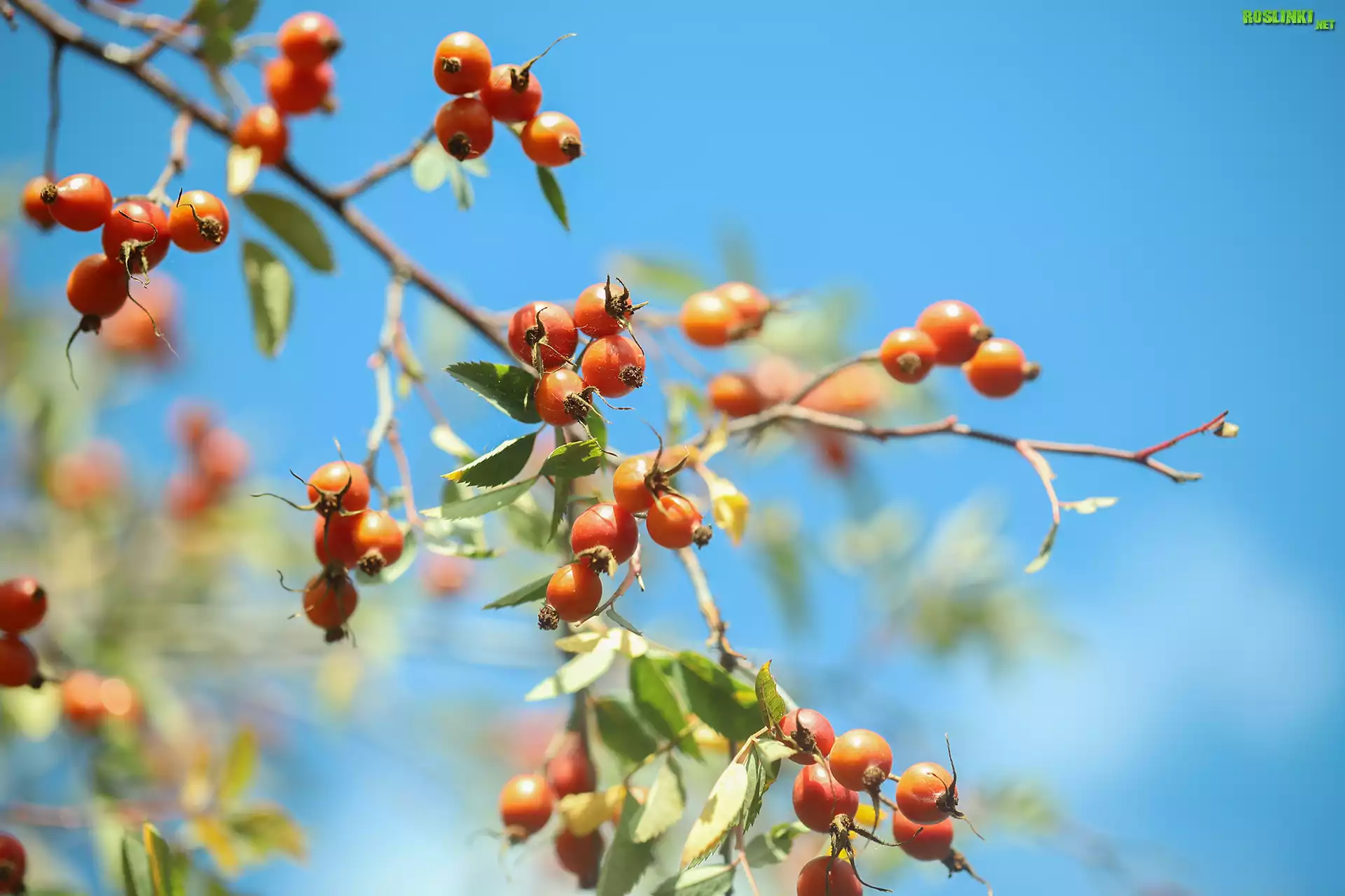 Rośliny: Dzika róża, Czerwone, Owoce, Gałązka