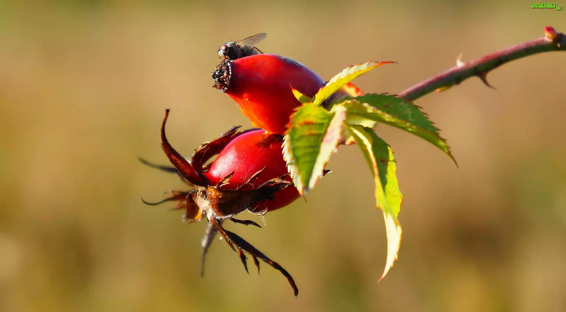 Rośliny: Dzika róża, Czerwone, Owoce, Mucha