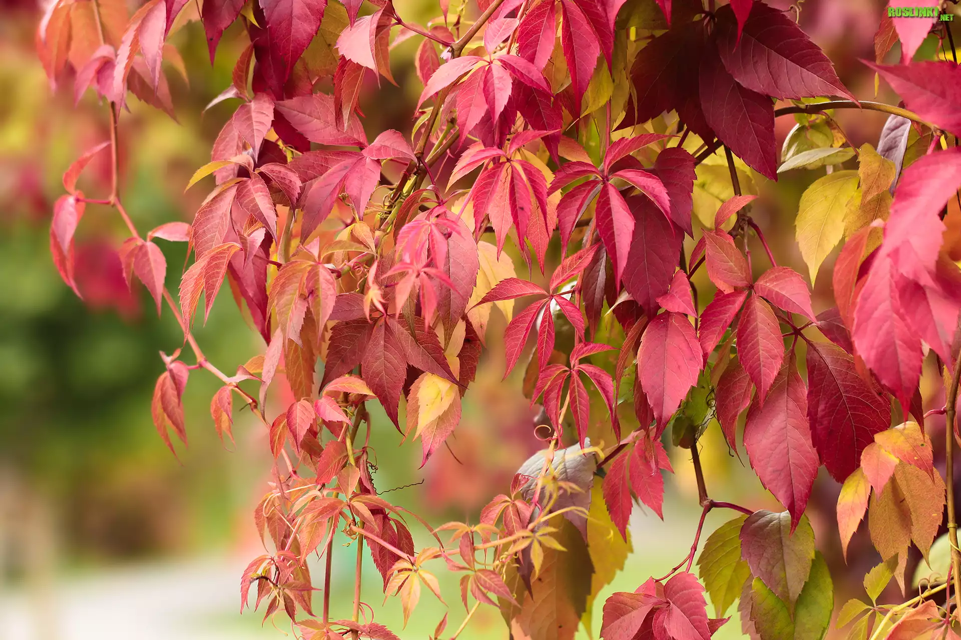 Rośliny: Dzikie wino, Czerwone, Liście, Pnącza