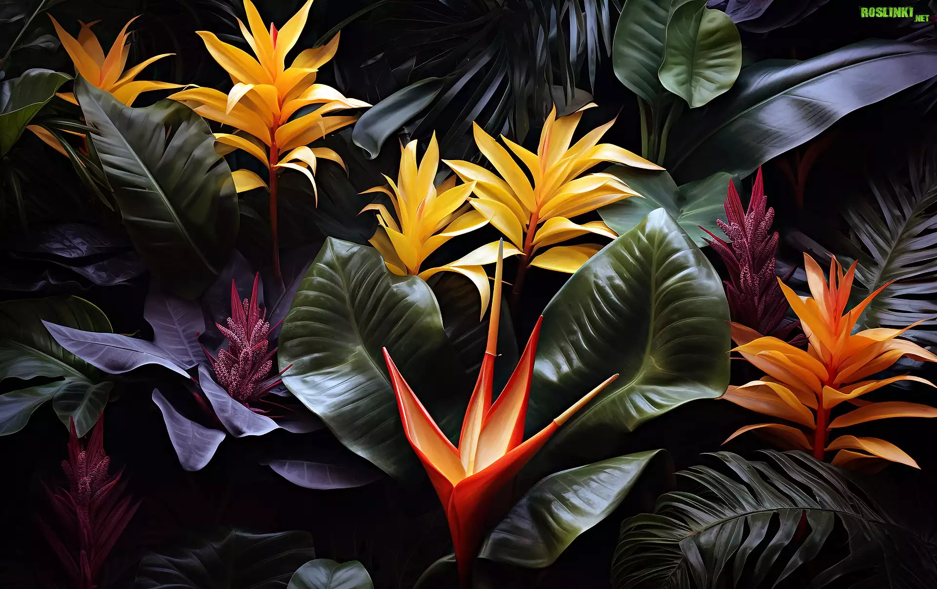 Rośliny: Liście, Egzotyczne, Pomarańczowe, Kwiaty, Grafika