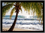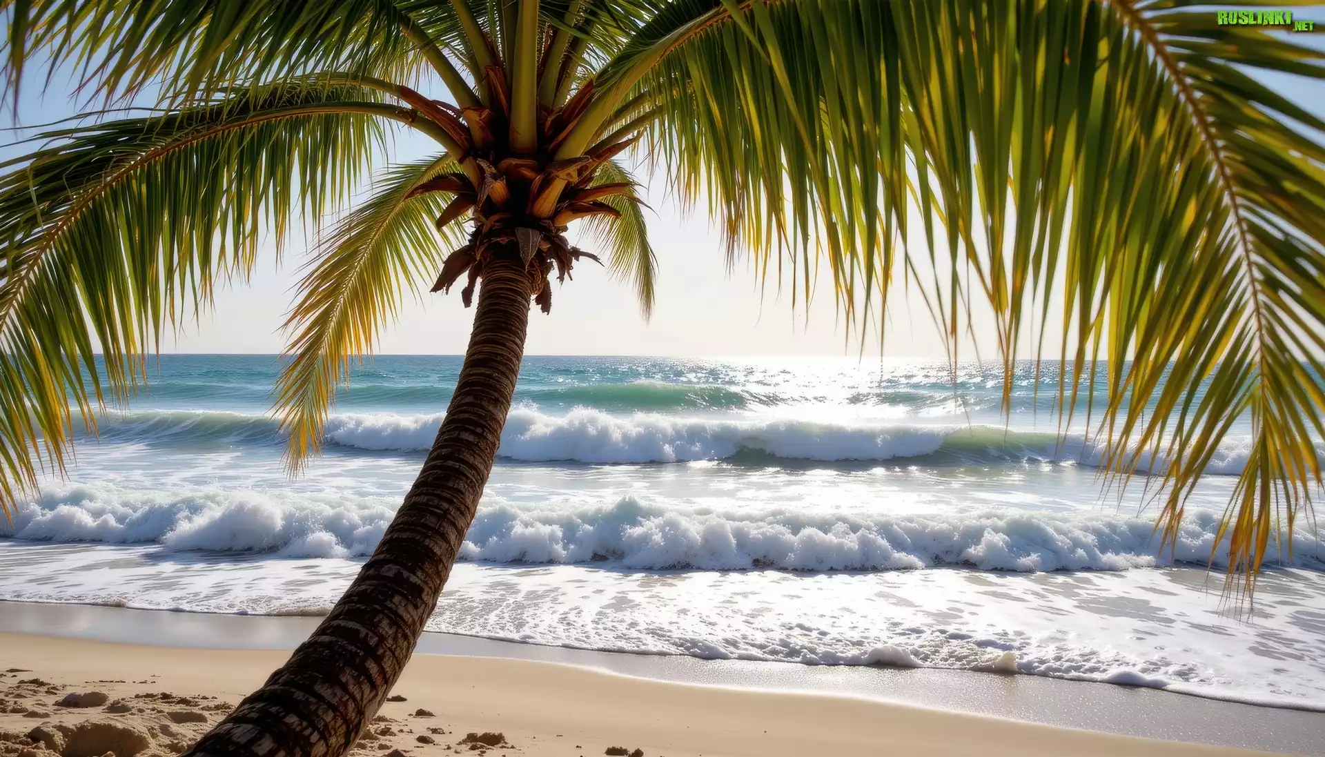 Rośliny: Palma, Plaża, Morze, Fale, Grafika AI