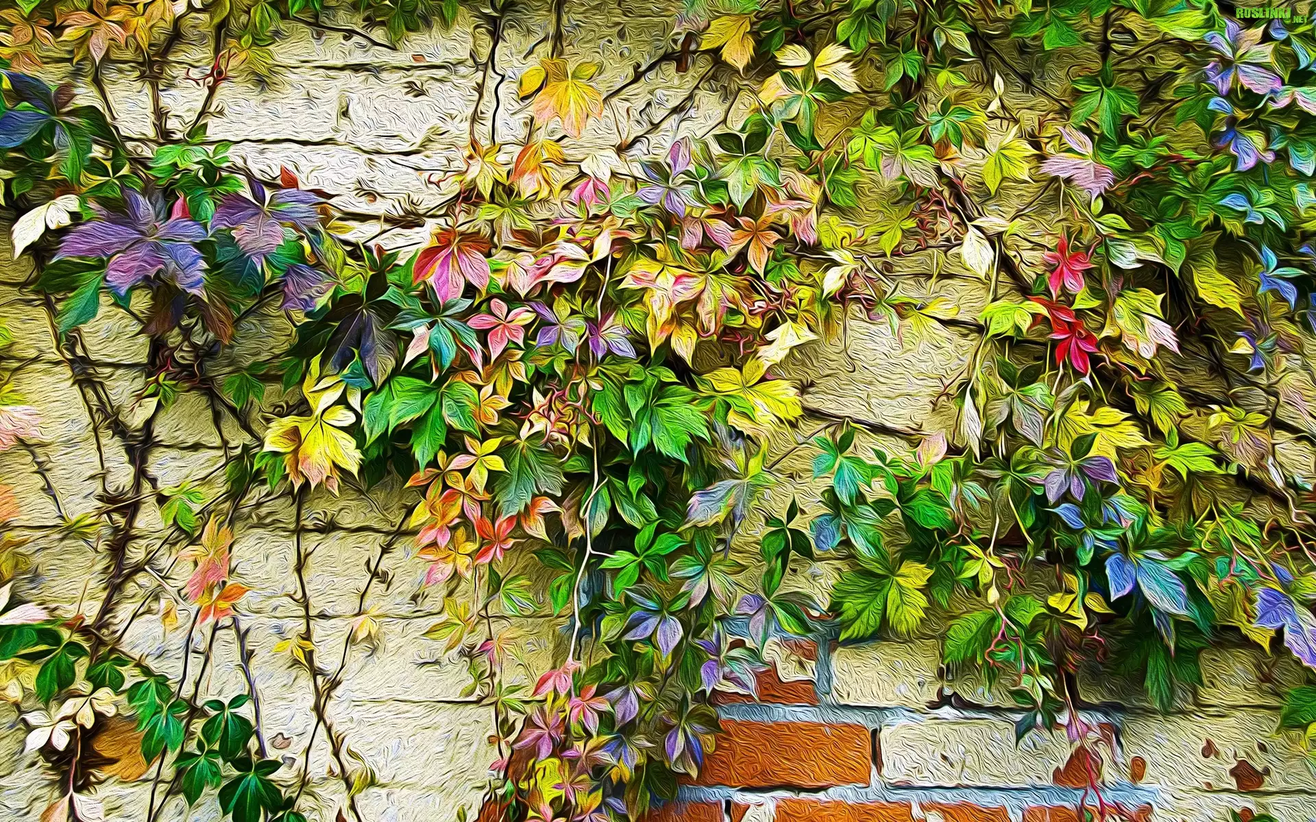 Rośliny: Fasada, Budynku, Pnące, Kolorowe, Liście