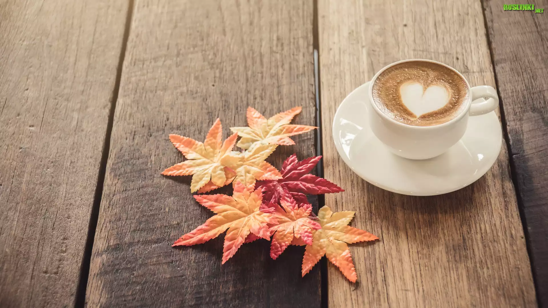 Filiżanka, Kawa, Serce, Liście, Deski