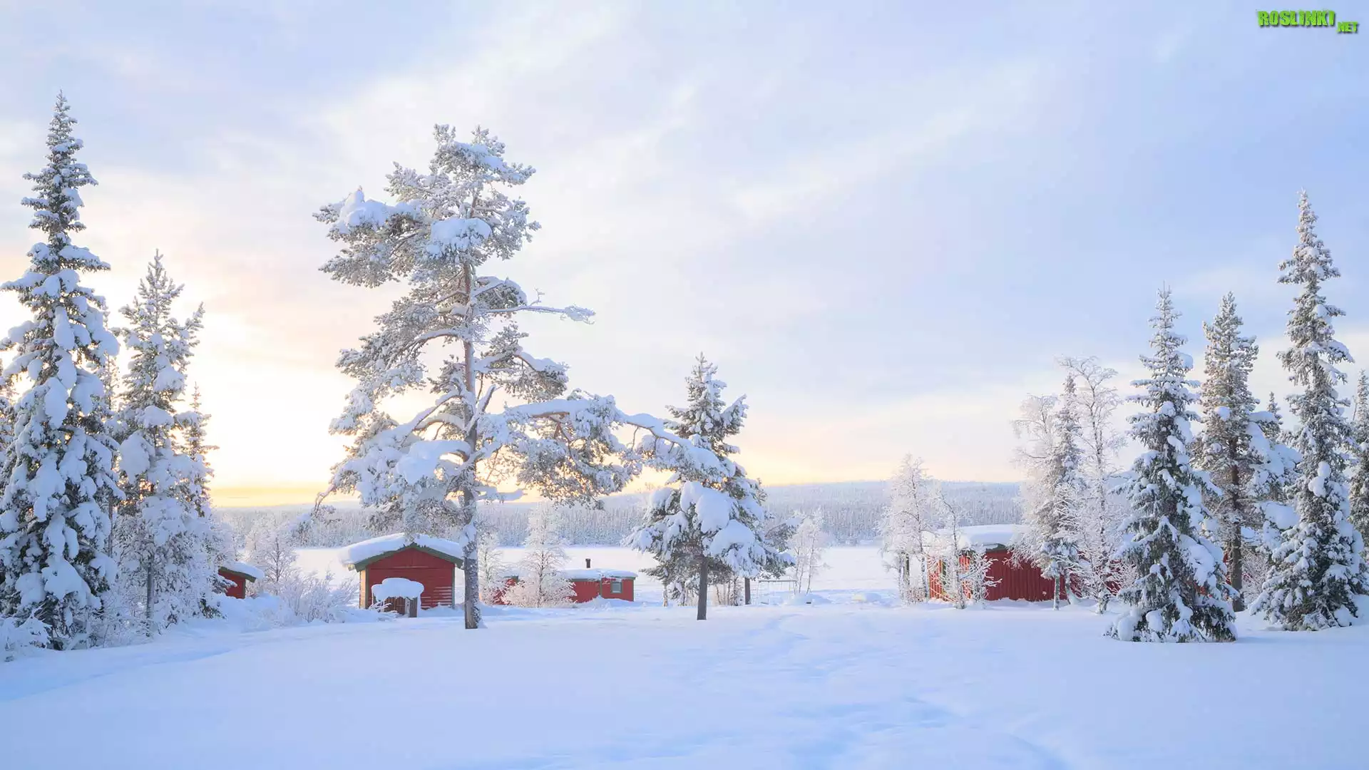 Rośliny: Finlandia, Laponia, Zima, Ośnieżone, Drzewa, Domy