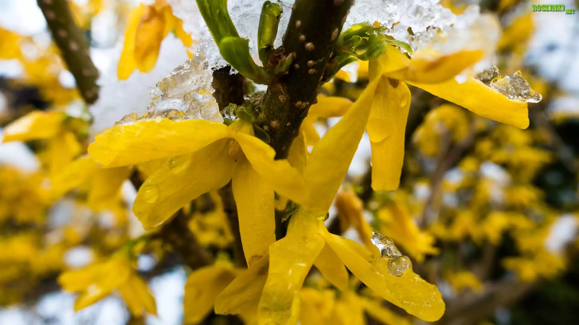 Rośliny: Krzew, Forsycja, Lód