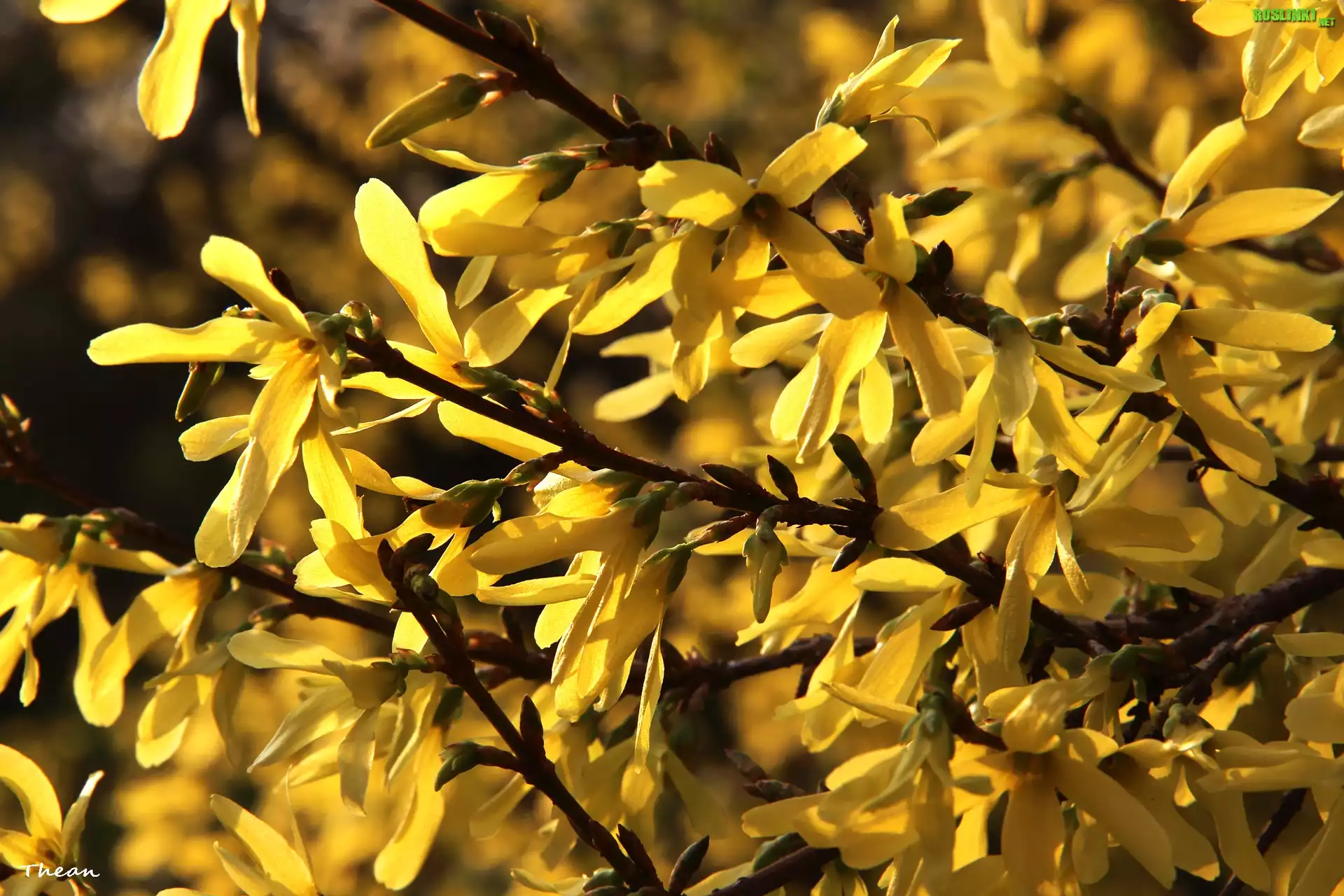 Rośliny: Forsycja, Żółte, Kwiaty, Krzew